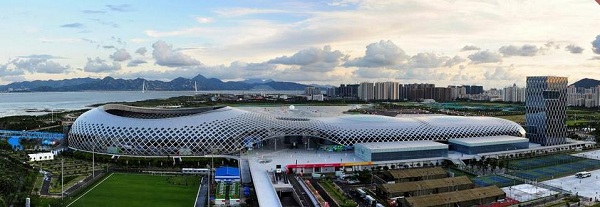 深圳灣體育中心“春繭”坐落于深圳市南山后海中心區(qū),是第26屆世界大學生夏季運動會分會場之一和開幕式場地,總建筑面積約32.2萬平方米,其體育場、體育館、游泳館被置于一個白色巨型網(wǎng)格狀鋼結(jié)構屋面下,線條柔美的大屋頂猶如孕育破繭而出沖向世界的運動健兒的孵化器,表現(xiàn)出新的活力。
