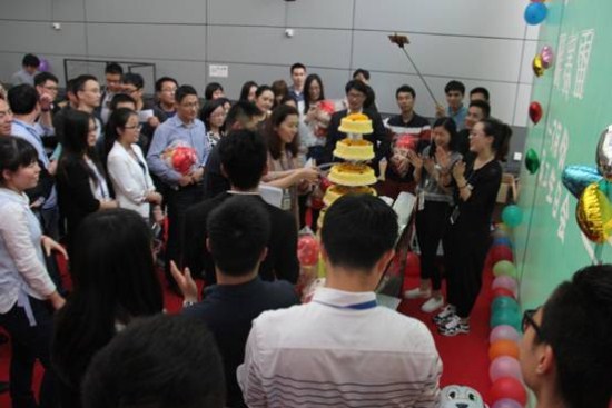 游戲過后,壽星們來到公司精心準備的5層生日大蛋糕前,合影留念,全場高唱生日快樂歌,盡情享用甜美的蛋糕,共同分享生日的喜悅,感受公司殷切的祝福,在一片歡聲笑語中結束了這次活動。