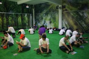 經(jīng)過為期一天的拓展訓(xùn)練,隊(duì)員之間形成了良好的默契。在拓展訓(xùn)練結(jié)束前完成“繪制生命樹”項(xiàng)目的同時(shí),教練組織隊(duì)員們進(jìn)行總結(jié),反省拓展訓(xùn)練完成過程中的不足。有的隊(duì)員把拓展活動(dòng)過程中需要的團(tuán)結(jié)協(xié)作與工作中類似的情況做了比較,談了內(nèi)心的感受;有的隊(duì)員談到溝通在完成拓展活動(dòng)與工作生活中所占據(jù)的重要地位與作用;有的隊(duì)員則看出問題和可以改善的地方,通過相互交流,隊(duì)員們發(fā)現(xiàn)每個(gè)拓展訓(xùn)練項(xiàng)目的設(shè)計(jì)都是有特定啟發(fā)意義的。