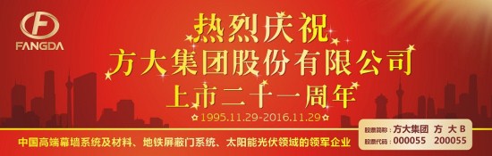 開拓進(jìn)取,塑造了方大集團(tuán)勇于創(chuàng)新的獨(dú)特氣質(zhì);光榮與夢想,賦予了方大集團(tuán)繼往開來、再創(chuàng)輝煌的崇高責(zé)任。在經(jīng)濟(jì)新常態(tài)背景下,方大集團(tuán)將繼續(xù)傳承“科技為本,創(chuàng)新為源”的經(jīng)營理念,深耕高端幕墻系統(tǒng)及材料、軌道交通屏蔽門系統(tǒng)、太陽能光伏以及房地產(chǎn)等產(chǎn)業(yè)領(lǐng)域,努力為市場提供更多優(yōu)質(zhì)產(chǎn)品,為社會創(chuàng)造更多財富,為投資者帶來更加豐厚的紅利。