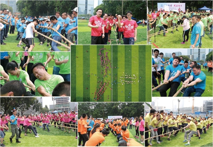 本次運(yùn)動(dòng)會(huì)設(shè)置了龜兔賽跑、超級(jí)漢諾塔、快樂(lè)gogogo、趣味拔河、納斯卡巨畫(huà)等趣味項(xiàng)目,比賽場(chǎng)上處處充滿著歡聲笑語(yǔ),大家玩得不亦樂(lè)乎!在龜兔賽跑環(huán)節(jié),各代表隊(duì)的隊(duì)員們分別頂著巨型充氣“烏龜”、“兔子”笑著跑著,奮力競(jìng)爭(zhēng),爭(zhēng)取最好的比賽成績(jī);在超級(jí)漢諾塔環(huán)節(jié),考驗(yàn)的不僅有團(tuán)隊(duì)成員的運(yùn)動(dòng)能力,還有團(tuán)隊(duì)內(nèi)部的組織協(xié)作效率;在快樂(lè)gogogo環(huán)節(jié),更是掀起了所有參賽員工的火熱激情,他們?cè)跉鈮|城堡中穿梭、攀爬、滑行、滾動(dòng),在回味和體驗(yàn)孩童時(shí)代樂(lè)趣的同時(shí),為自己的團(tuán)隊(duì)爭(zhēng)取好的名次;趣味拔河環(huán)節(jié)是這次運(yùn)動(dòng)會(huì)的最高潮,只見(jiàn)加油的叫喊聲震天動(dòng)地,拔河的隊(duì)員無(wú)不神態(tài)激越,使出渾身之力,將拔河繩拉得吱吱地響;最后是納斯卡巨畫(huà)環(huán)節(jié),參與運(yùn)動(dòng)會(huì)的全體員工一同用五顏六色的油彩,分工合作,共同繪出印有方大集團(tuán)logo的巨型圖畫(huà)。通過(guò)百米高空上無(wú)人機(jī)的航拍我們看到,在530余名方大人簇?fù)碇械姆酱?/span>logo巨畫(huà),在燦爛陽(yáng)光的照耀下,正閃閃發(fā)光,正如她在行業(yè)中的響亮知名度一樣。
