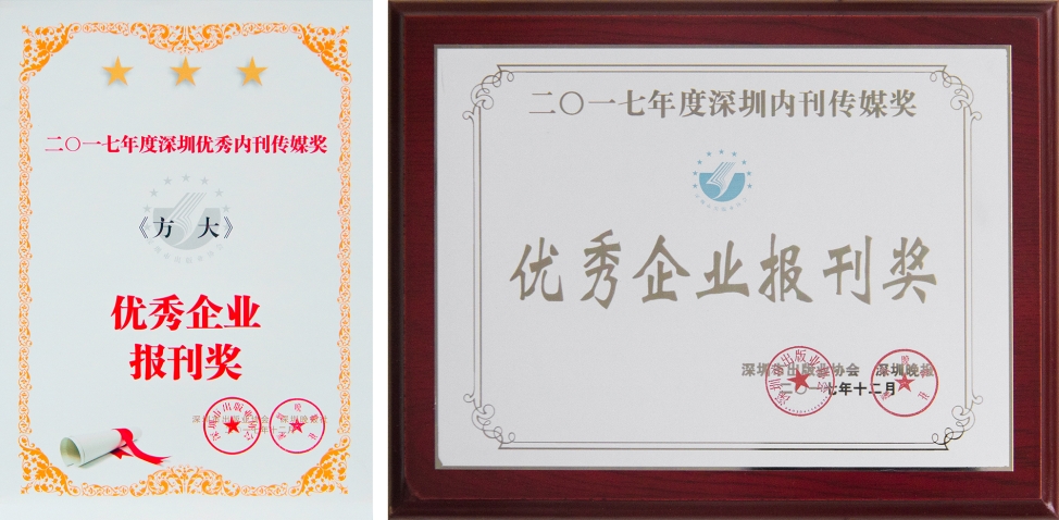 12月,方大集團企業刊物《方大》榮獲深圳市出版業協會“2017年度優秀企業報刊獎”,多年來堅持以專業務實態度傳遞公司資訊、傳播企業文化的《方大》再一次獲得業界的肯定與好評。