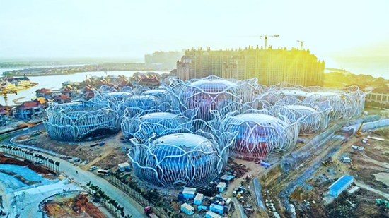 海口·恒大海花島位海南省儋州市,該島由三個既獨立又緊密相連的離岸式島嶼組成,從高空俯瞰,形狀猶如一朵盛開的鮮花。方大建科承建國際會議中心幕墻工程,由9個單獨的球型建筑組成,各球體幕墻采用了玻璃面板。項目團隊攻克異形幕墻設計施工、鋼結構屋蓋跨度大以及施工作業面小等難題,與業主攜手并肩,互相激勵,不辭一切加快1#島項目建設,為海花島的開業打下了堅實的基礎。