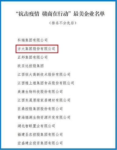 方大集團(tuán)榮獲“抗擊疫情 贛商在行動(dòng)”最美企業(yè)稱號(hào)